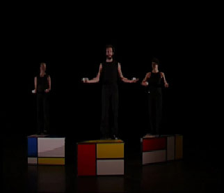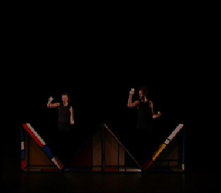 Setting up the performance group ‘K-DNK’ (’ker-dunk’: the sound of a ball hitting two walls) with Kati Yla-Hokkola and Sean Gandini allowed for further experimentation. Aided by the Jerwood Foundation they premiered their performance ‘No Exit’ in 2004. Experiments are continuing with cubes, diamonds, upside down triangles, slopes, moving angles, large xylophone bars and more.